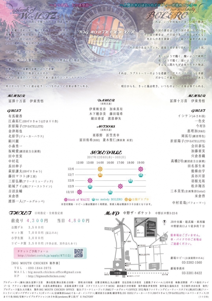チケット料金前売り 4,300円 / 当日4,800円(全席指定)